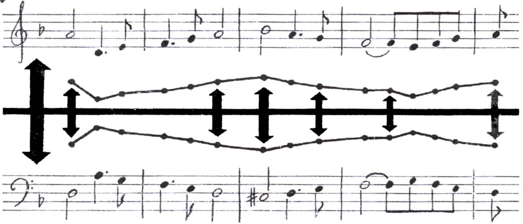 Now, let’s apply this concept to Bach’s music. Bach would first create a short musical phrase that he would use throughout the entire song. This phrase would usually be a special characteristic of the music. This phrase is known as the motif. Bach would then go on to make two variations of the motif. The first variation he would make is by laterally inverting the motif. This would result in a new musical phrase that has a new and different sound. It is known as the inversion. The second variation he would make is by flipping the motif along the horizontal axis. This variation results in a retrograde.